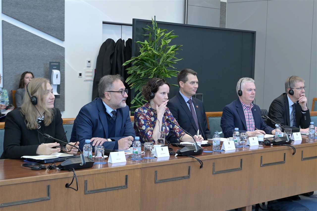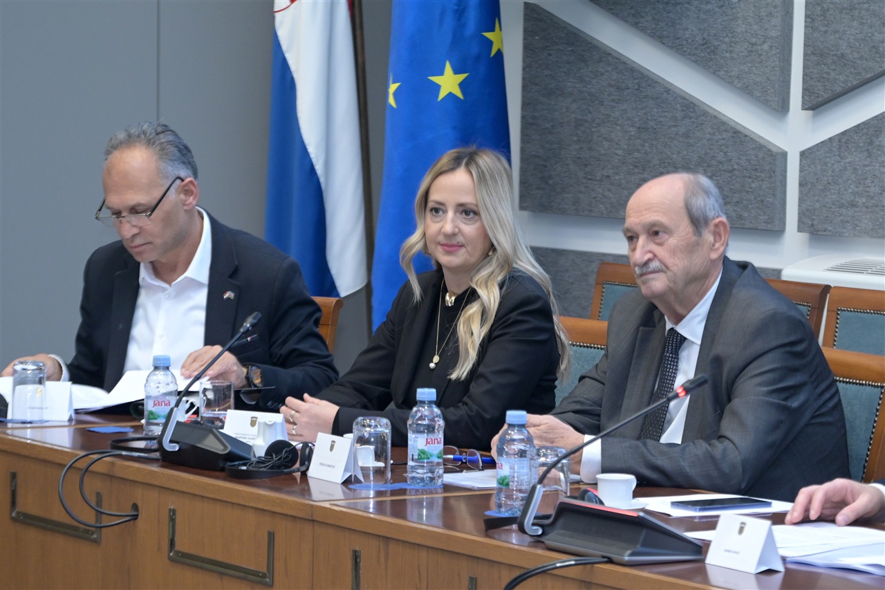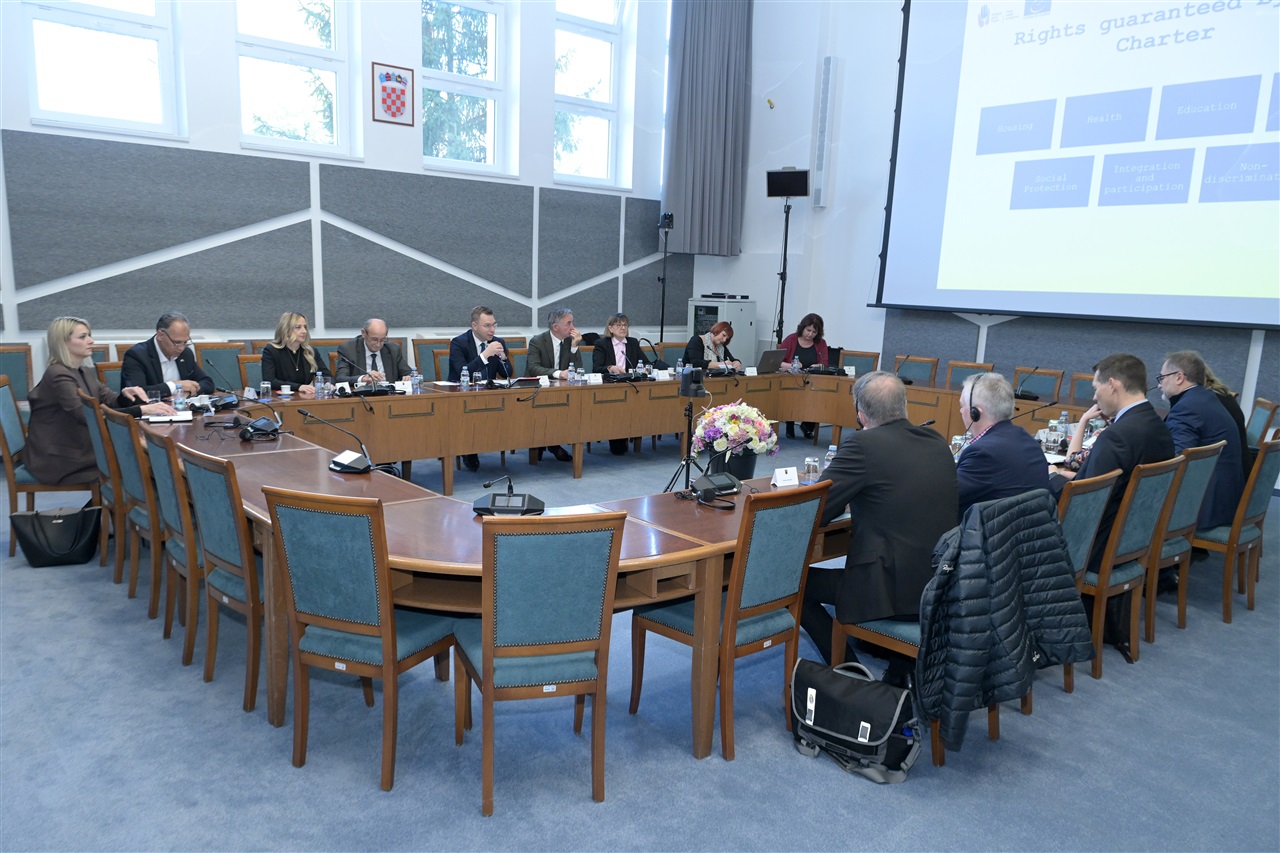 Zagreb - Voditelj Izaslanstva Hrvatskoga sabora u Parlamentarnoj skupštini Vijeća Europe Marko Pavić i članica Zdravka Bušić, član Odbora za rad, mirovinski sustav i socijalno partnerstvo Veselko Gabričević, predsjednik Odbora za ljudska prava i prava nacionalnih manjina Milorad Pupovac, potpredsjednica Sanja Bježančević i član Veljko Kajtazi te članica Odbora za zdravstvo i socijalnu politiku Martina Vlašić Iljkić održali su u petak sastanak s izaslanstvom Europskog odbora za socijalna prava Parlamentarne skupštine Vijeća Europe (ECSR) predvođeno predsjednicom Aoife Nolan.