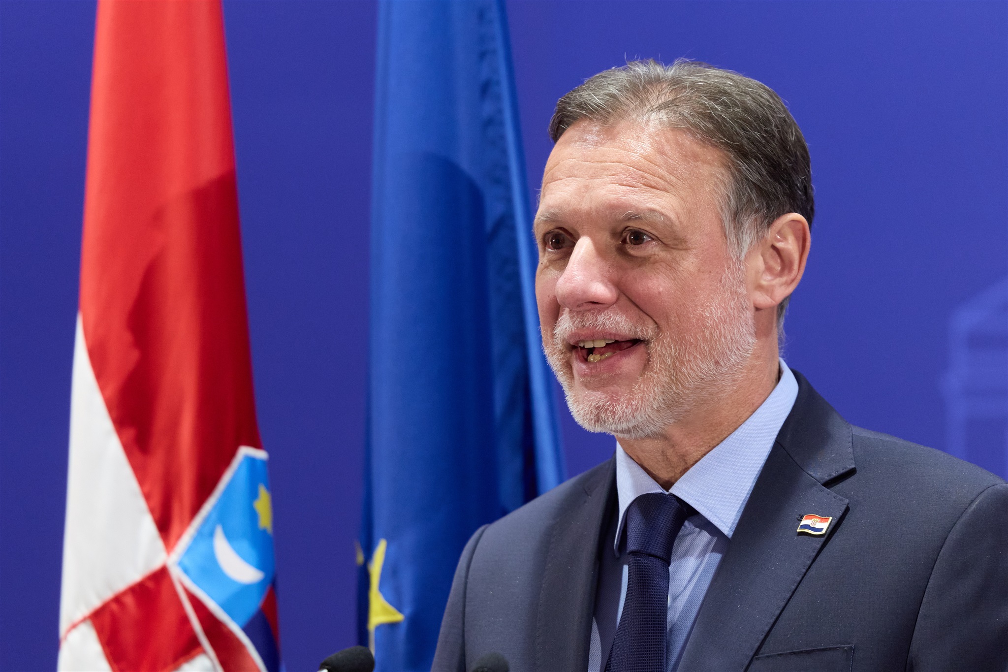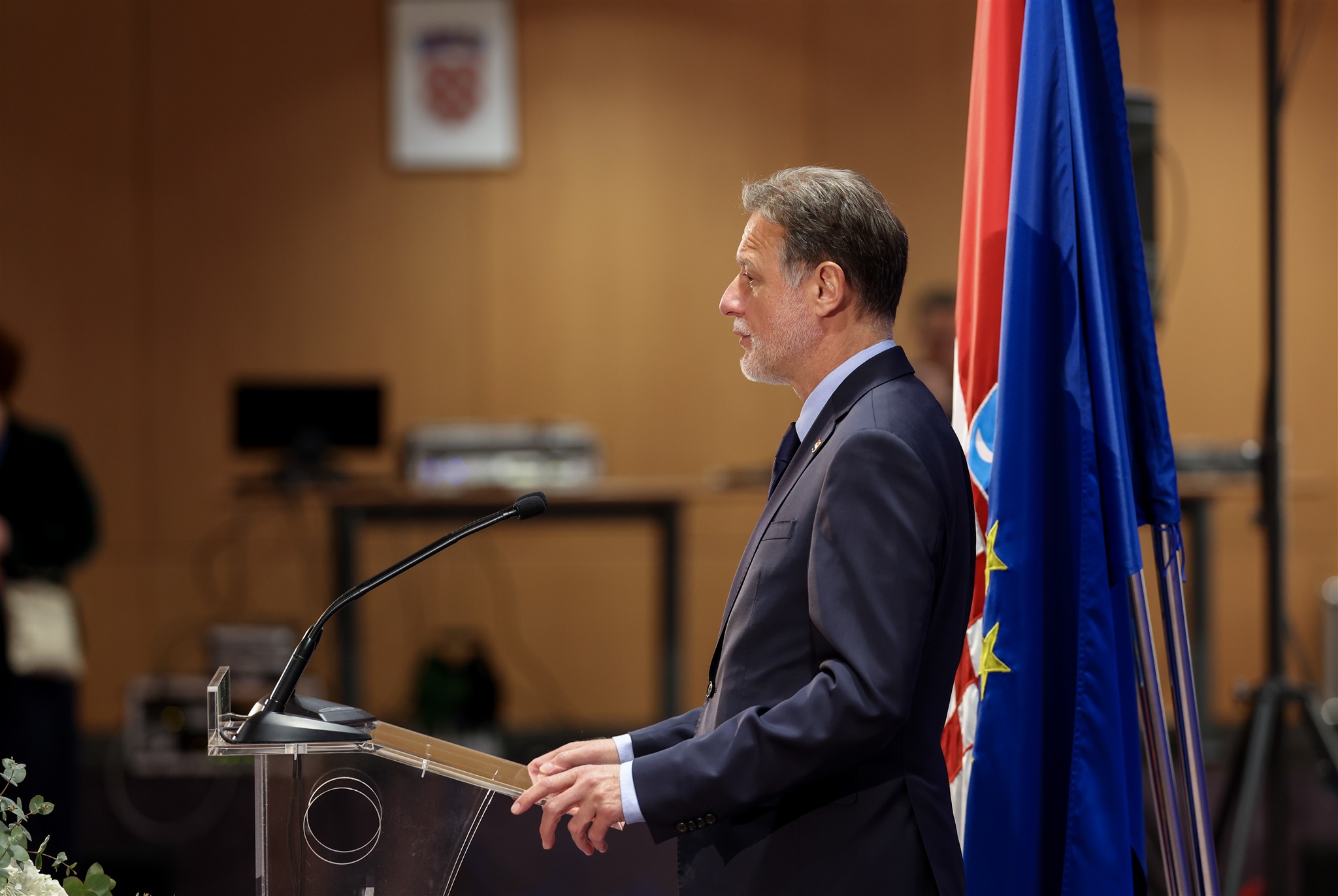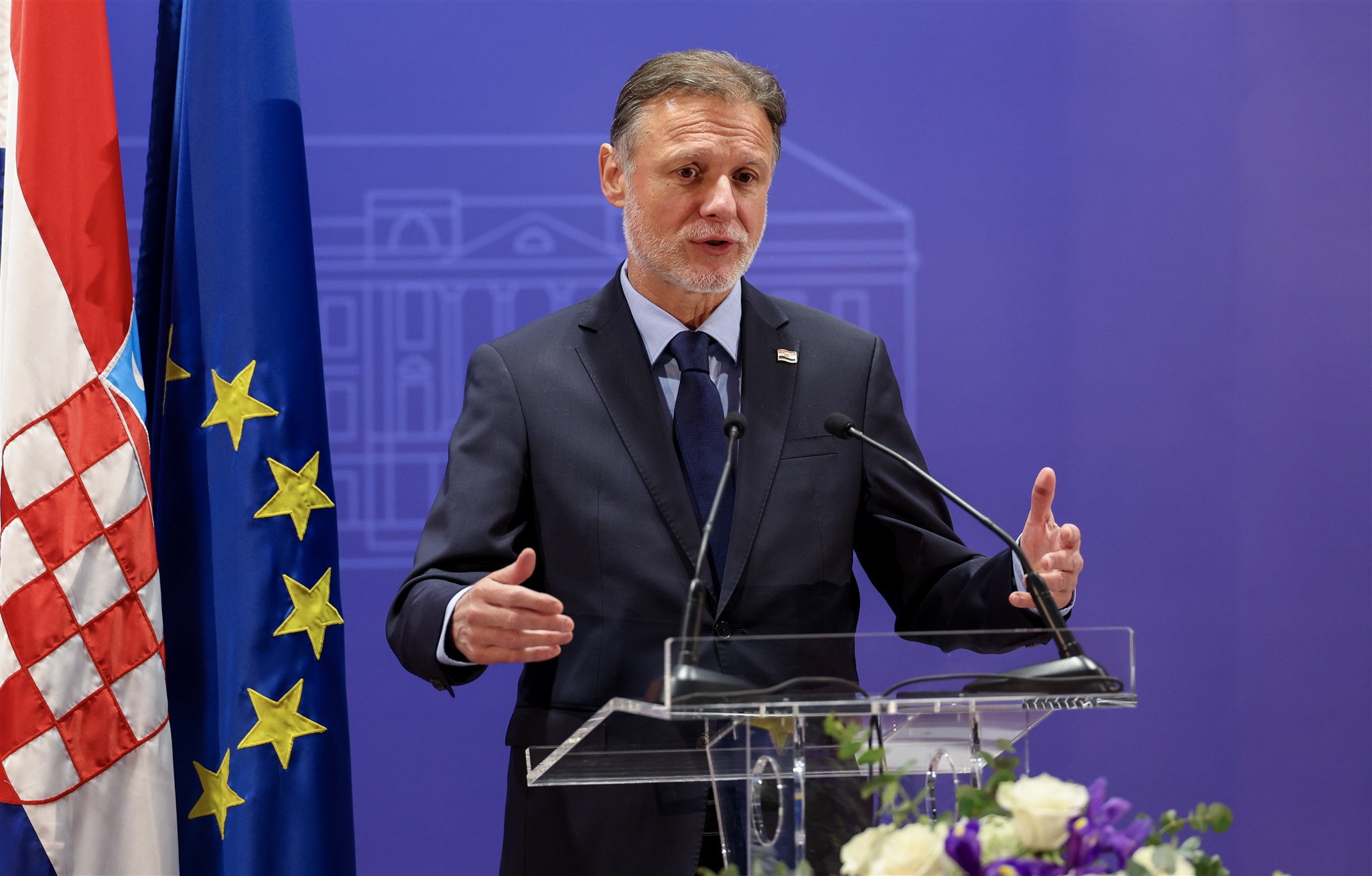 Parlamentarni summit Inicijative triju mora - konferencija za medije predsjednika Hrvatskoga sabora Gordana Jandrokovića, Nacionalna i sveučilišna knjižnica, Zagreb, 25. ožujka 2026.