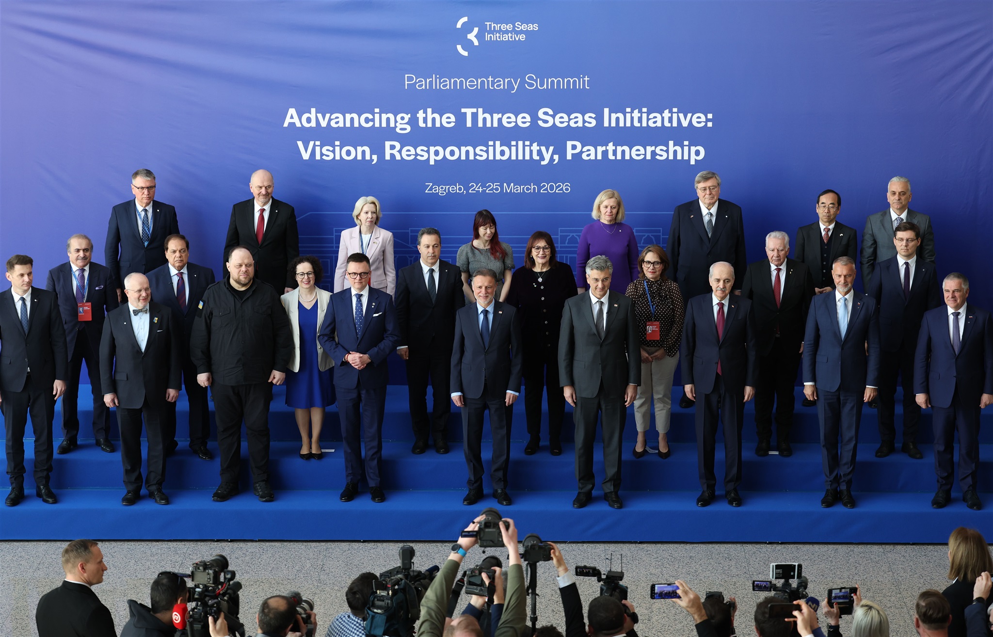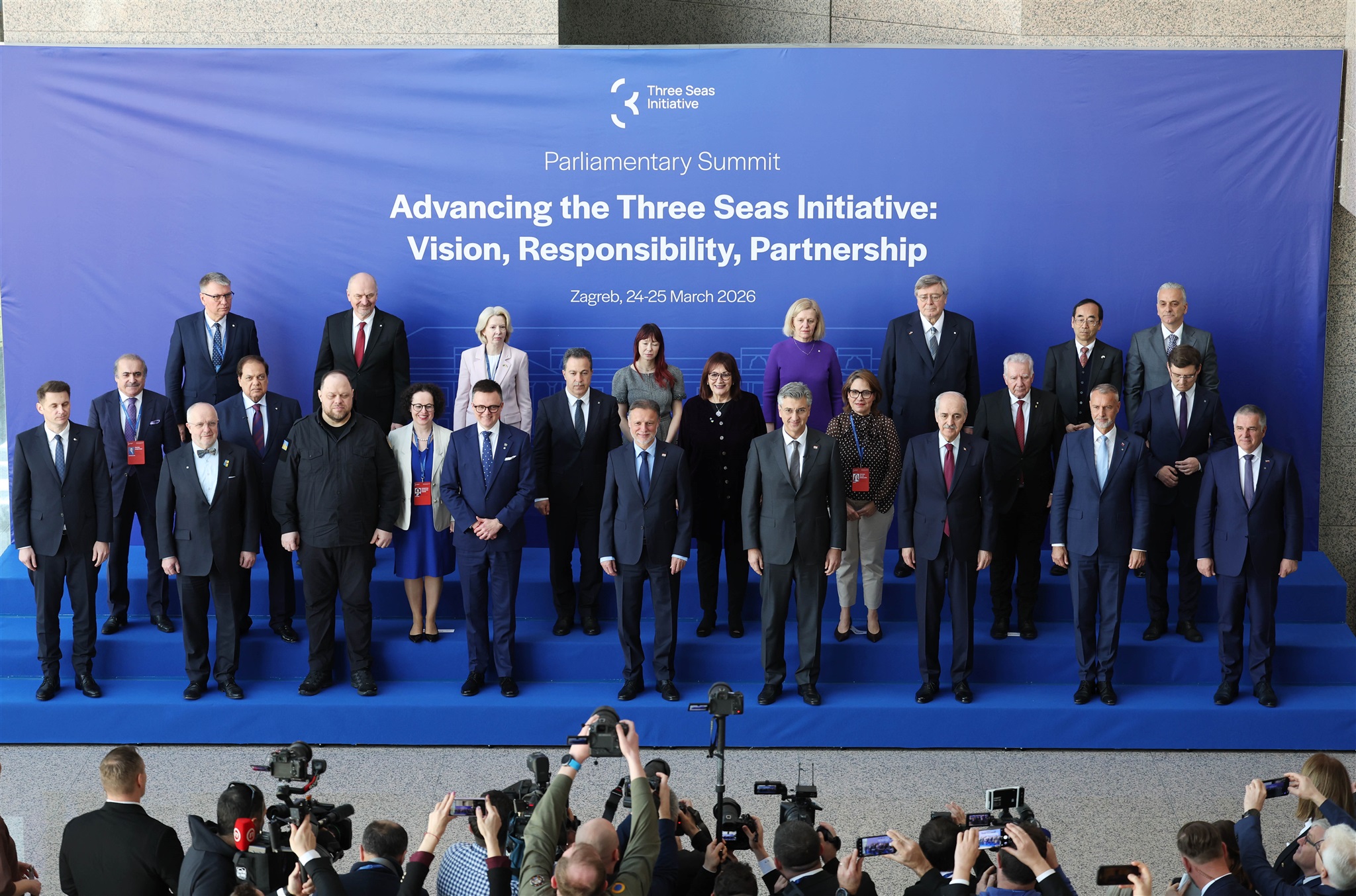 Parlamentarni summit Inicijative triju mora - skupna fotografija sudionika, Nacionalna i sveučilišna knjižnica, Zagreb, 25. ožujka 2026.