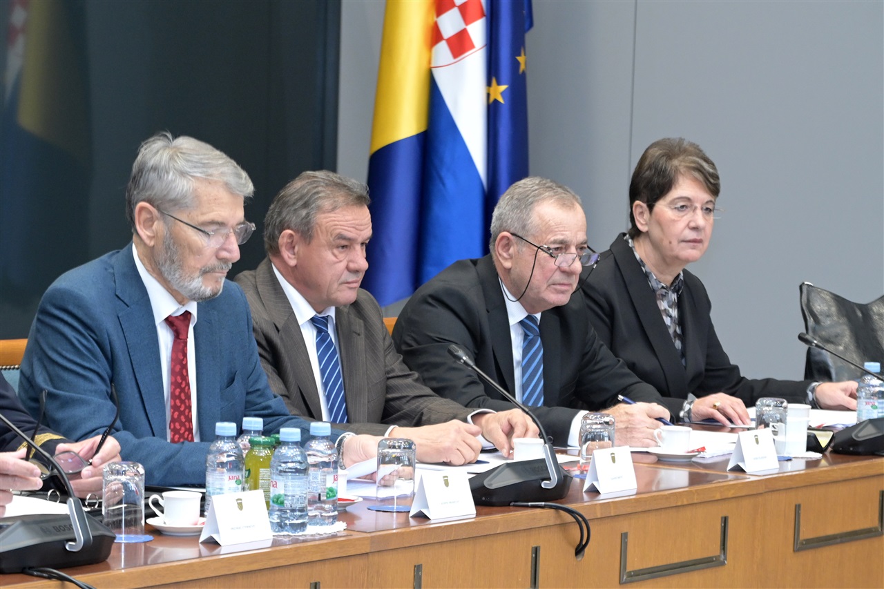 Zagreb – Predsjednik Odbora za obranu Arsen Bauk, predsjednik Odbora za unutarnju politiku i nacionalnu sigurnost Ranko Ostojić i potpredsjednik Odbora za obranu Ante Deur održali su u utorak radni sastanak s izaslanstvom Zajedničke komisije za obranu i sigurnost BiH, predvođeno predsjednikom Komisije Jasminom Imamovićem, zamjenikom direktora Regionalnog centra za pomoć u verifikaciji i provedbi kontrole naoružanja - RACVIAC-a kontraadmiralom Predragom Stipanovićem, parlamentarnim vojnim povjerenikom BiH Boškom Šiljegovićem i predstavnikom Misije OESS-a u BiH Samirom Bašićem te njihovim suradnicima.