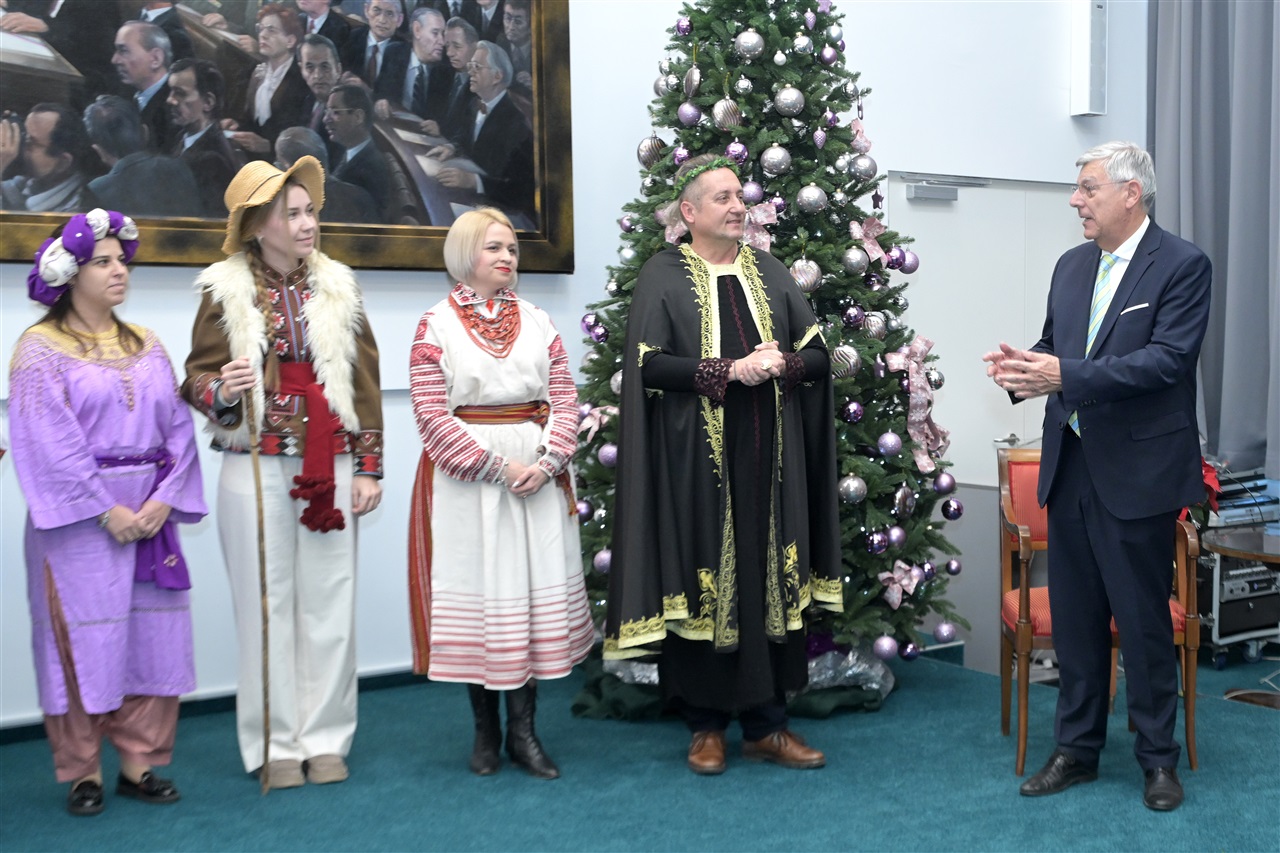 Zagreb – Potpredsjednik Hrvatskoga sabora akademik Željko Reiner, u svojstvu izaslanika predsjednika Sabora, primio je u četvrtak izvođače tradicionalnog ukrajinskog božićnog kazališnog događaja "Jaslice" (ukr. Vertep).