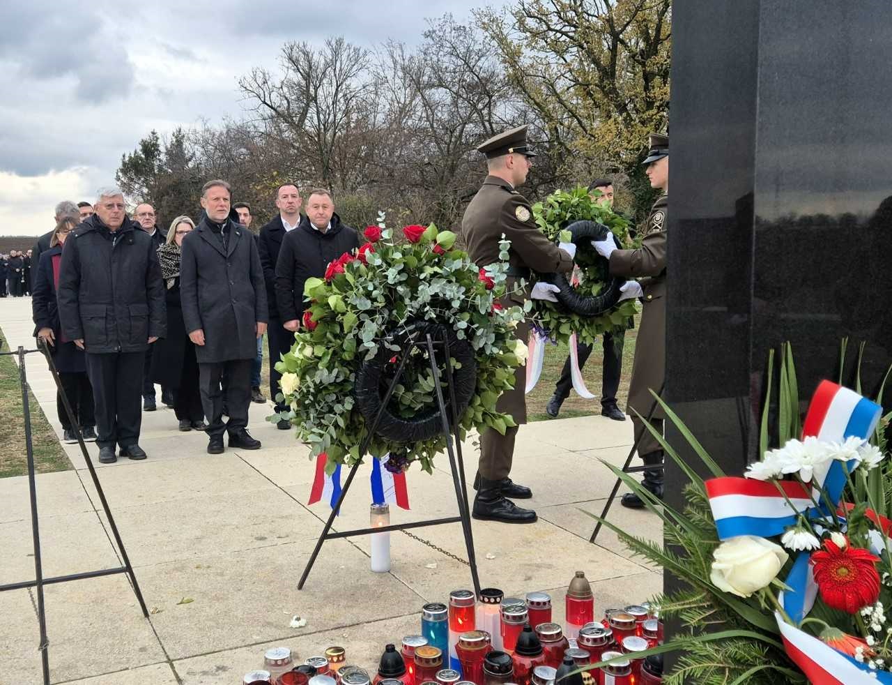 Kod Spomen obilježja na mjestu masovne grobnice na Ovčari predsjednik Jandroković, zajedno s izaslanstvom Hrvatskog sabora, odao je počast žrtvama Domovinskog rata polaganjem vijenaca i paljenjem svijeća.