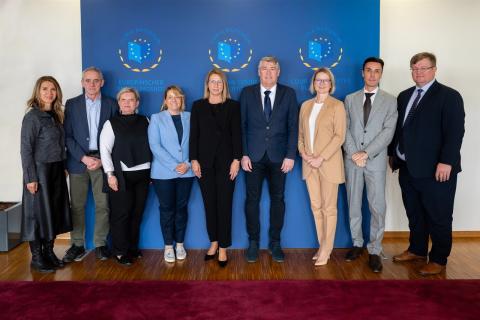 Luksemburg - Na poziv Ivane Maletić, članice Europskog revizorskog suda, izaslanstvo Odbora za financije i državni proračun, u sastavu predsjednik Odbora Boris Lalovac i članovi Damir Bakić, Danica Baričević i Anamarija Blažević, posjetilo je 20. i 21. travnja 2026. Europski revizorski sud, Europsku investicijsku banku i Eurostat, u sjedištima tih institucija u Luksemburgu.